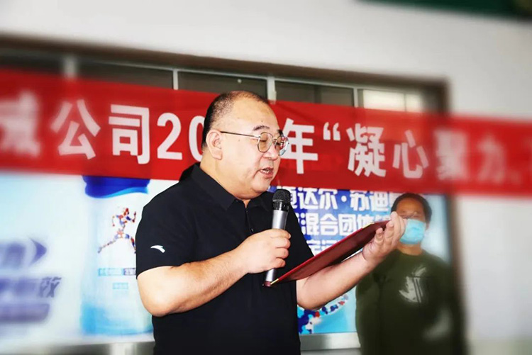 集團(tuán)黨委書記焦沖作重要講話,他對(duì)機(jī)械公司旋壓車間成功入選“山東省工人先鋒號(hào)”表示祝賀,這是省一級(jí)工會(huì)組織對(duì)機(jī)械公司勞模精神、勞動(dòng)精神、工匠精神的充分認(rèn)可,更是對(duì)機(jī)械公司廣大干部職工的一次激勵(lì),希望全體干部職工干在實(shí)處、勇立潮頭,推動(dòng)公司持續(xù)健康發(fā)展!更希望借助這次團(tuán)建活動(dòng)的機(jī)會(huì),培養(yǎng)對(duì)體育運(yùn)動(dòng)的興趣,以賽事為牽引,帶動(dòng)廣大職工參與到體育運(yùn)動(dòng)中去,利用空閑時(shí)間,掀起健身浪潮。同時(shí),希望活動(dòng)組委會(huì)周密組織活動(dòng),保障得當(dāng),希望全體裁判員及時(shí)、客觀、公正,希望各位運(yùn)動(dòng)員賽出風(fēng)格、賽出水平、賽出團(tuán)結(jié),取得理想成績(jī)。